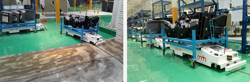 云南力帆駿馬車輛有限公司主要生產輕卡和重卡整機生產,該AGV項目用于總裝車間線邊物料的配送以及空料車回收,滿足生產線40JPH節(jié)拍。AGV采用磁道航導引系統(tǒng),并通過控制系統(tǒng)與其他管理系統(tǒng)即時通訊,可實現(xiàn)無人自動化運輸,是汽車行業(yè)等提升行業(yè)競爭力、減少人工成本、提高倉配效率的選擇。
